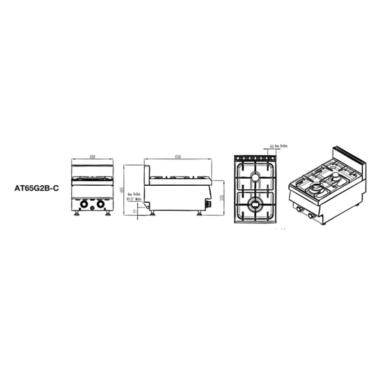 2 BURNER COOK TOP 650 - AT65G2B-C